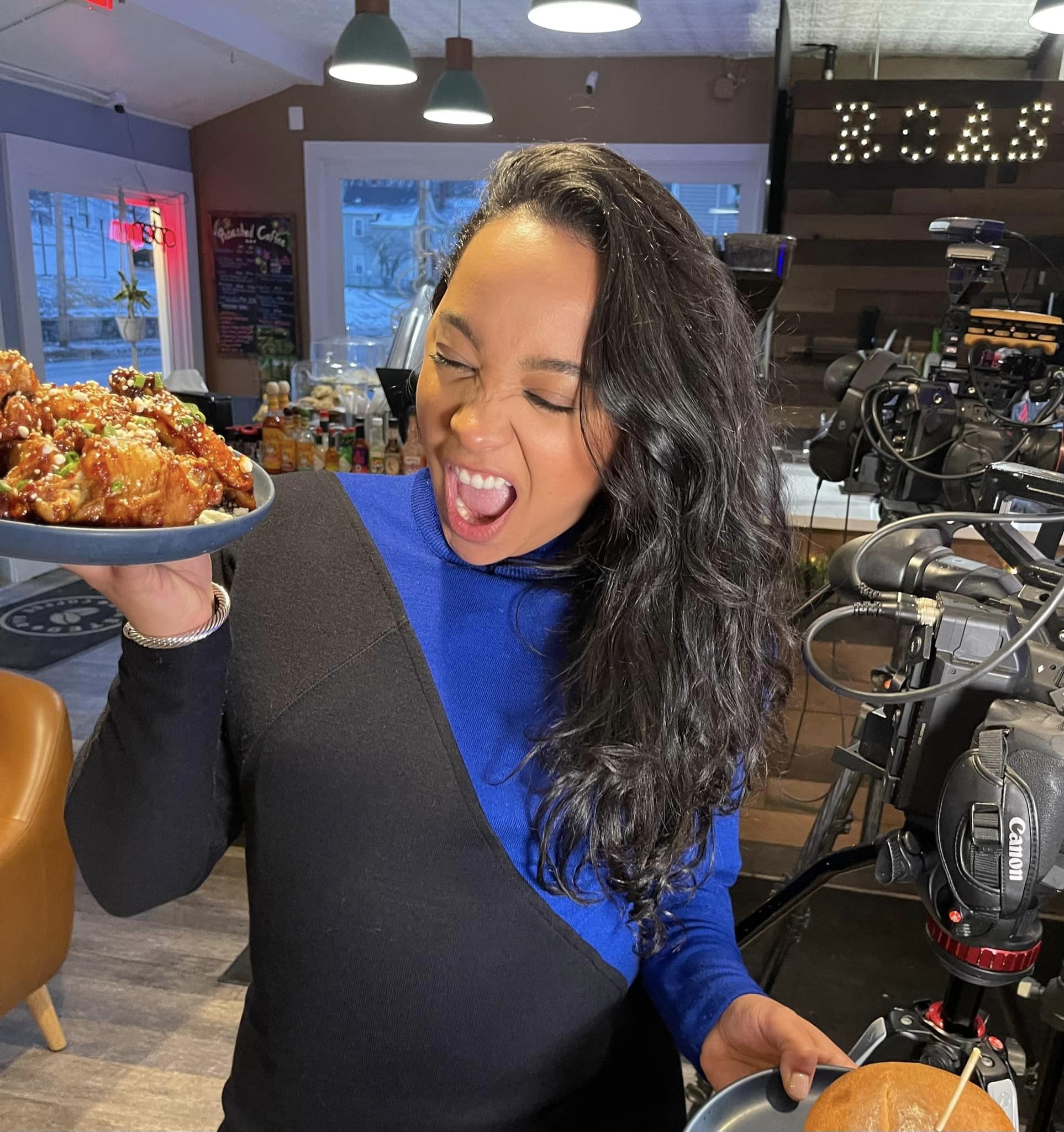 The food is one of the best parts of the TV job. Her love for food started from working in a Pizza shop to serving food. She used to make cold subs and now shes on Tv trying them! Sometimes shooting up to (2) locations a day for NESN's Wicked Bites can be a long day on the job. When She is on set she tries to eat as LITTLE as possible but tries as MUCH as she can. You can catch the food side of Bianca on NESN's Wicked Bites. She has Hosted and Co Hosted that show for about 7 years counting. Aside from TV experience she has also had radio experience for Wicked Bites on WRKO.